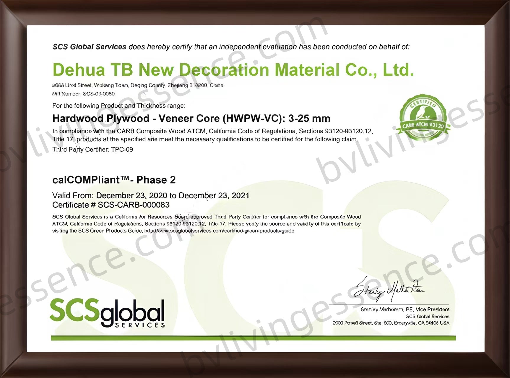 - CARB ATCM Phase 2: Compliant formaldehyde levels in composite woods.