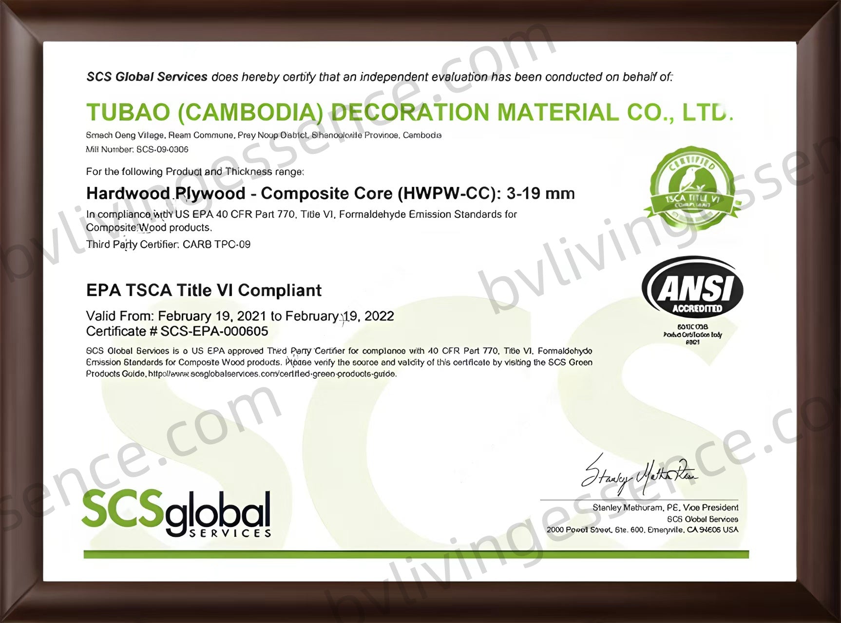 - EPA TSCA Title VI:Meets U.S. formaldehyde emission standards.