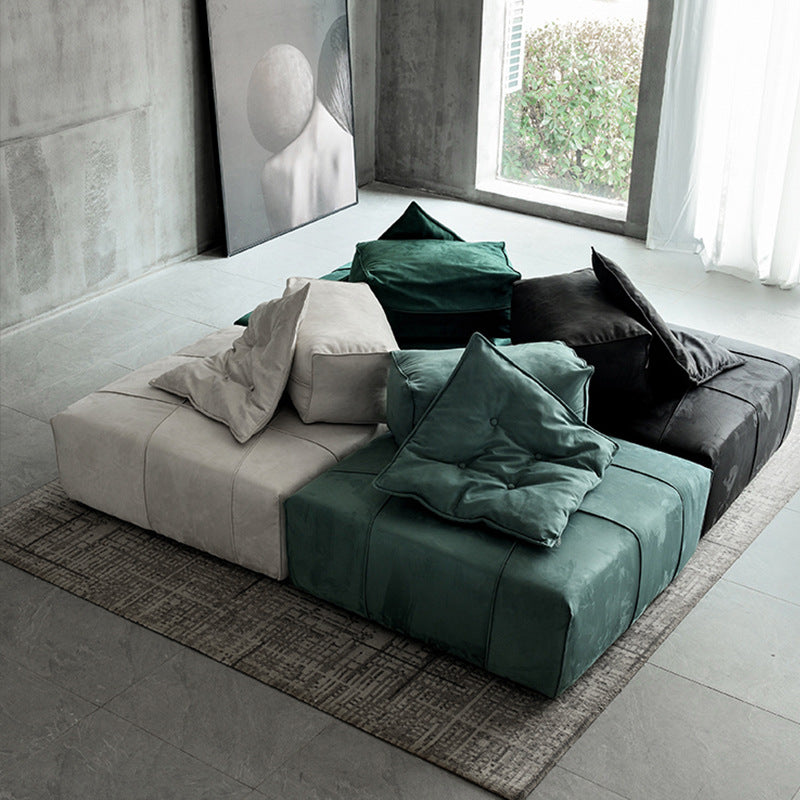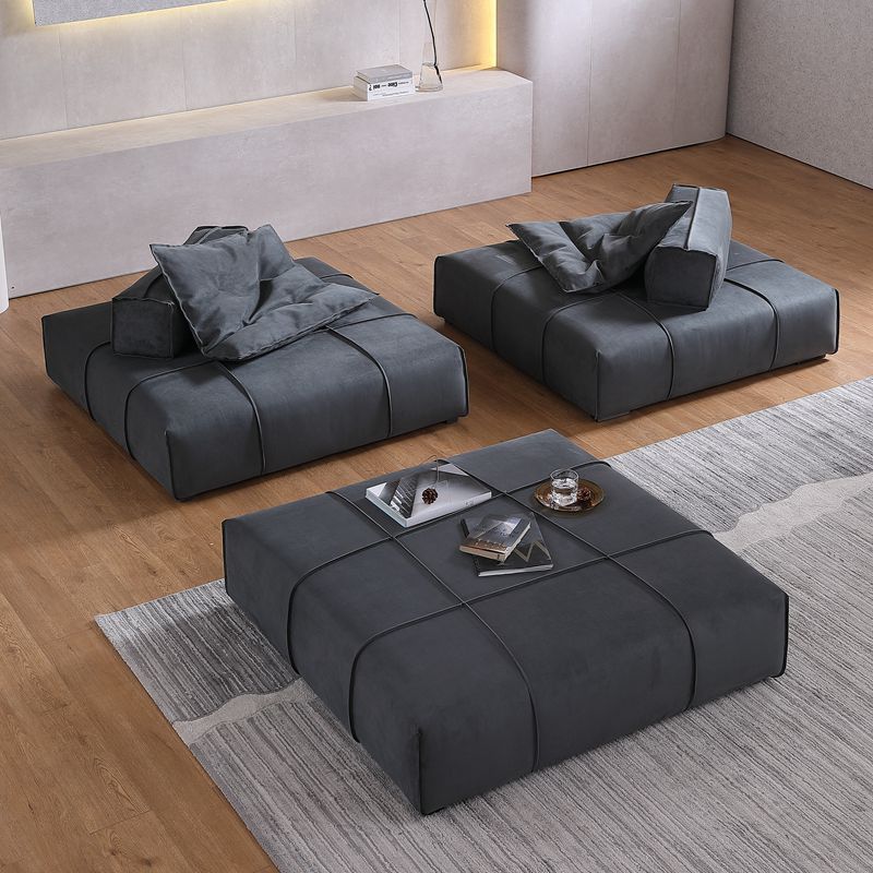 minimalist design with plush, tufted cushions. Its soft, neutral fabric adds a touch of sophistication, making it a stylish and comfortable addition to any contemporary living space.